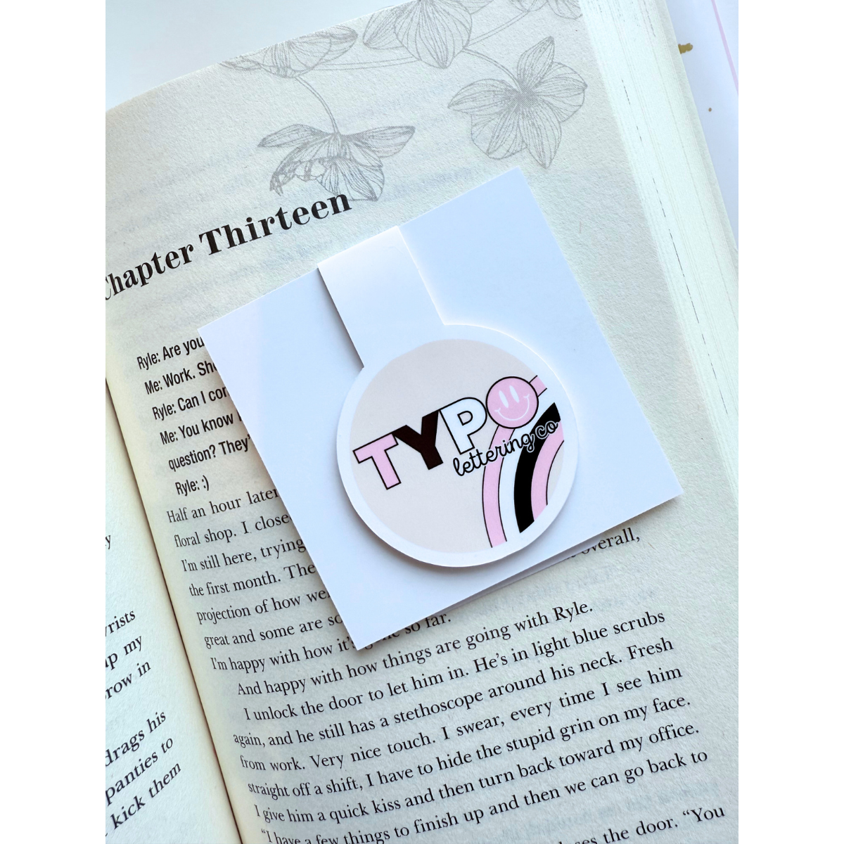 Bookmark is printed on vinyl and backed with cardstock with clear laminate over the top. Super strength magnets attached; can easily bookmark 10+ pages.