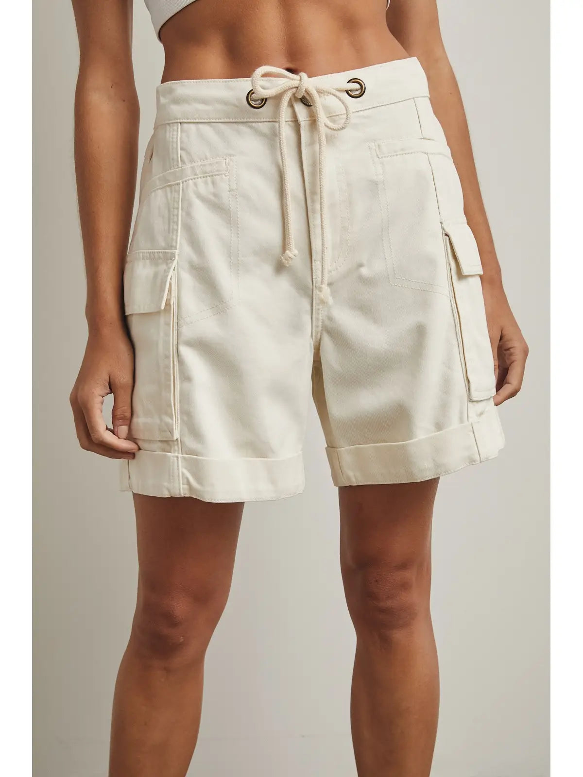 DENIM CARGO SHORTS WITH DRAWSTRING