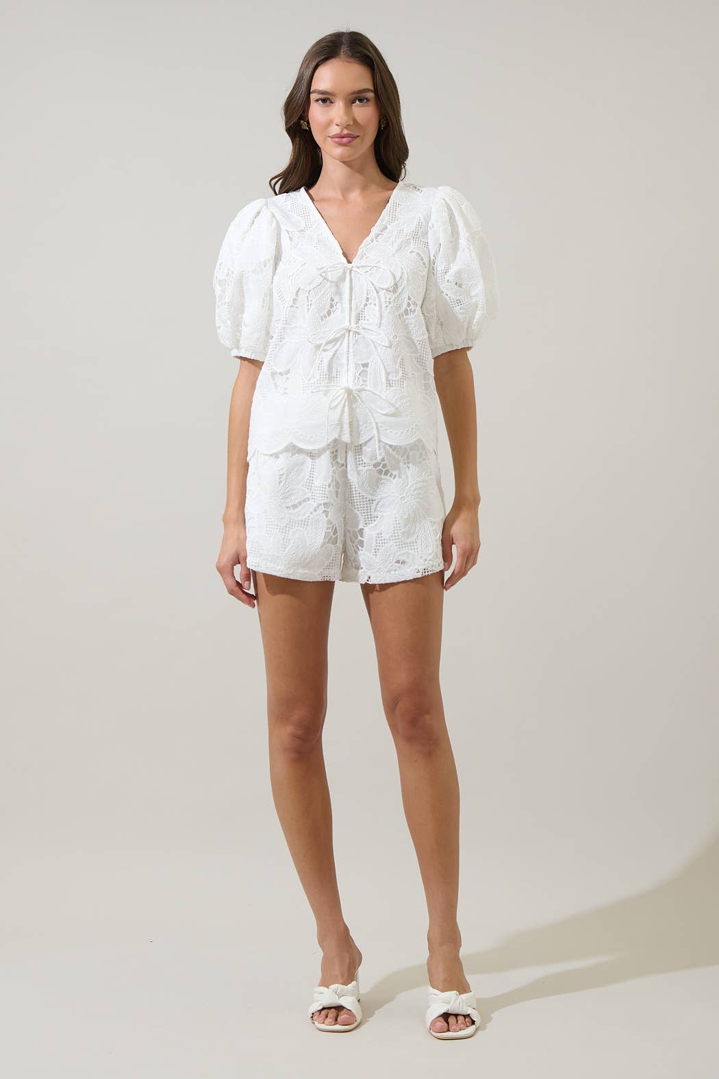 When comfy meets cute, you get the Friona Eyelet Taliya Drawstring Shorts. These classic style shorts that feature an elastic waist and adjustable drawstring. They sit higher on the hips and maintain a straight fit. You can pair it it’s matching top and create a cute set.