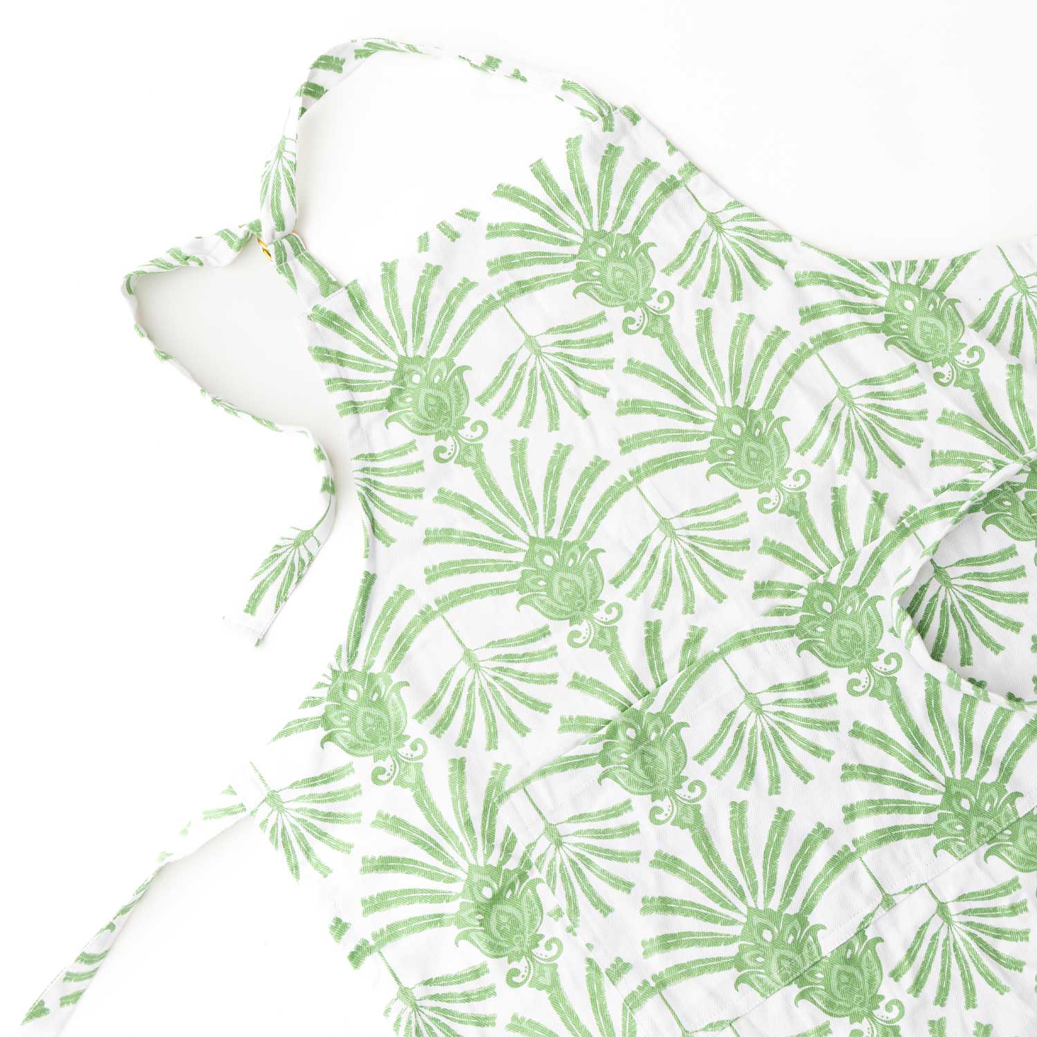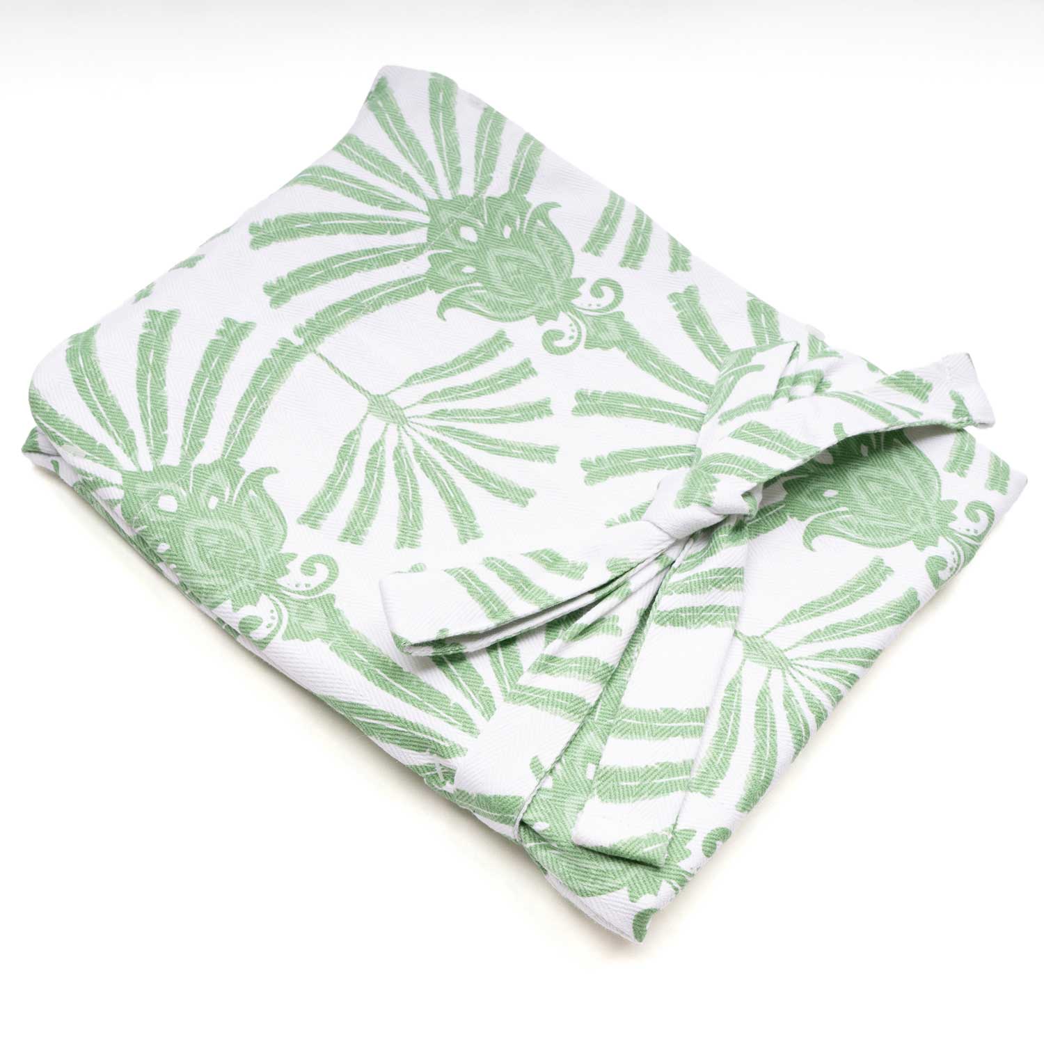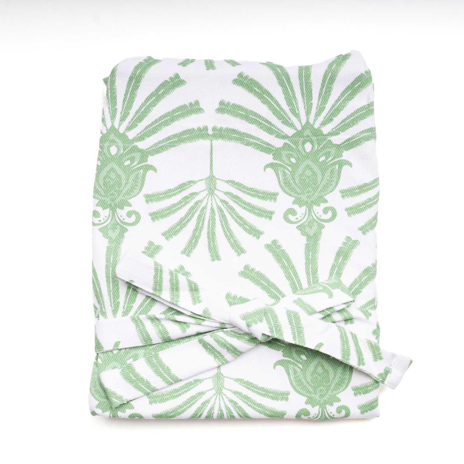The print features a deco-inspired palm fan motif in fresh green set against a crisp white background. Bold yet elegant, the design blends tropical flair with a touch of Art Deco sophistication, making it a standout accent for both modern and classic kitchens. The leafy pattern adds a refreshing, nature-inspired energy that feels timeless and versatile for everyday cooking or entertaining.