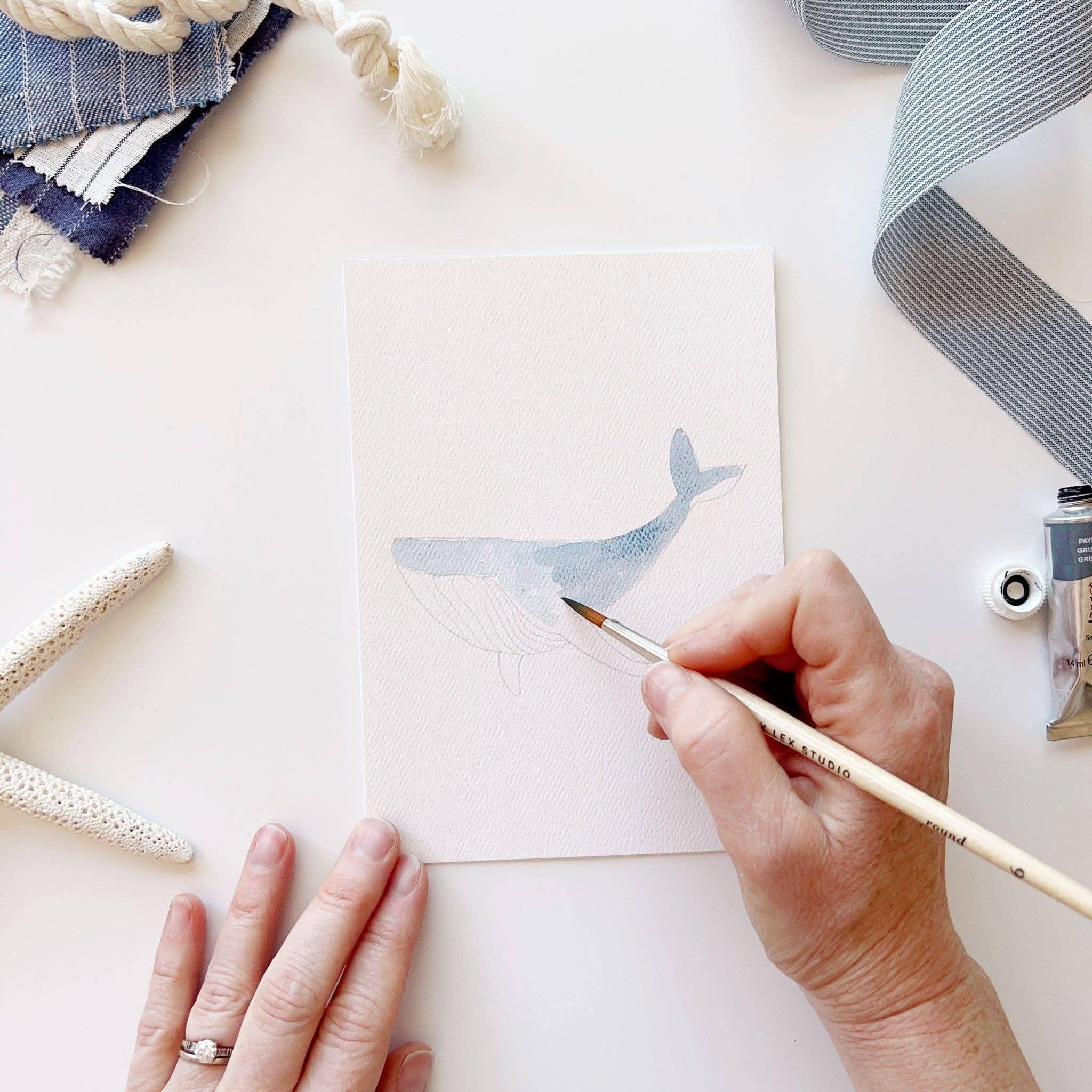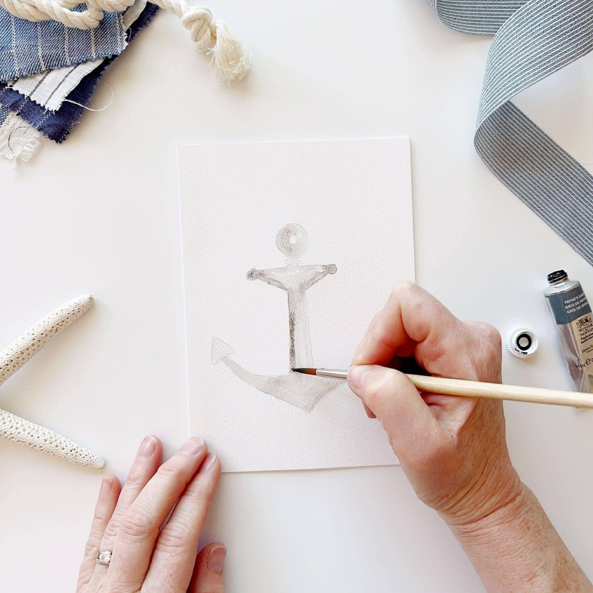 Paint your own special note cards! Sketches are printed on the front of each card with simple instructions for you to paint in with watercolors. You'll receive eight cards with two of each illustration: whale, sailboat, lighthouse and anchor. Perfect for artists of all ages! Details: - set of eight paintable notecards + envelopes - two of each illustration lightly sketched for you to paint - blank inside - 5" x 7" - Printed on 110lb watercolor paper - Original watercolor artwork by Emily Lex