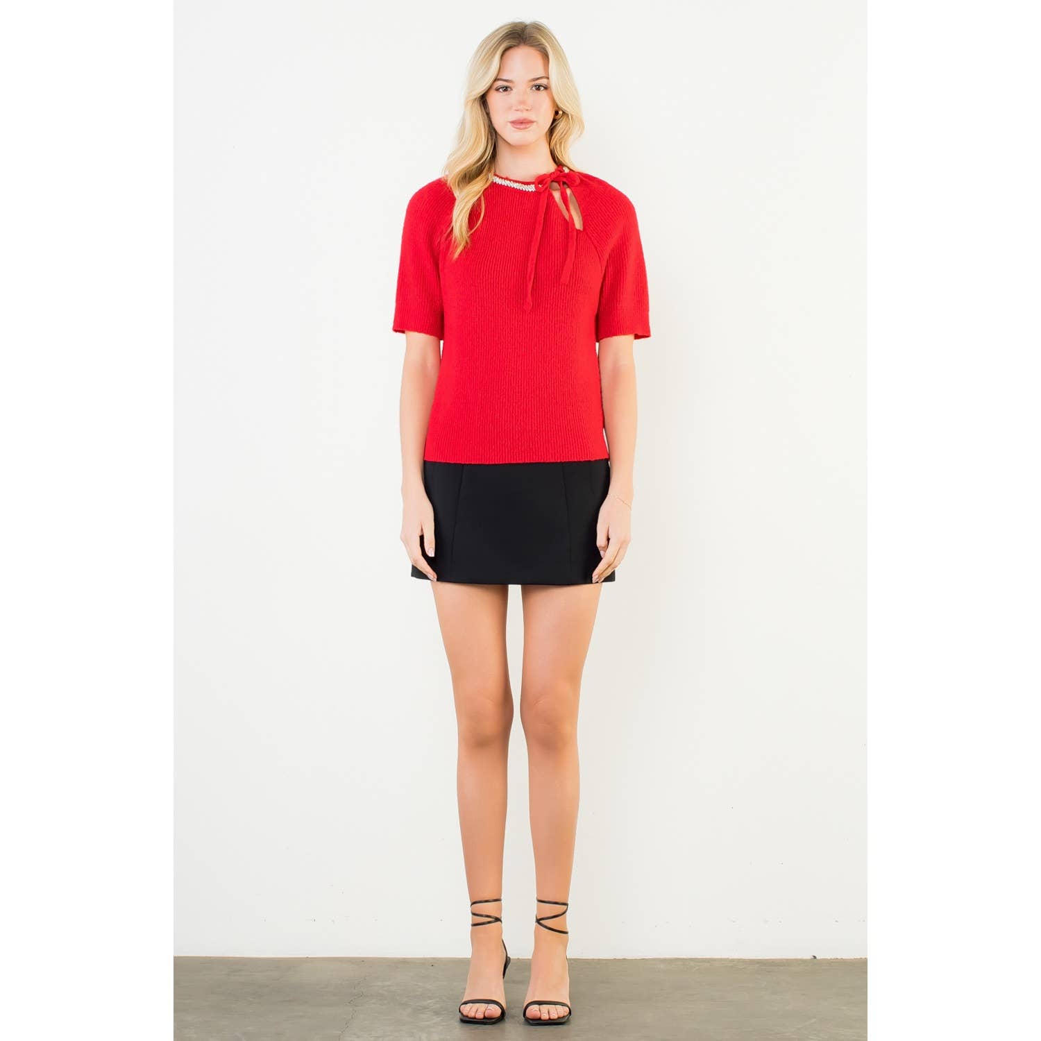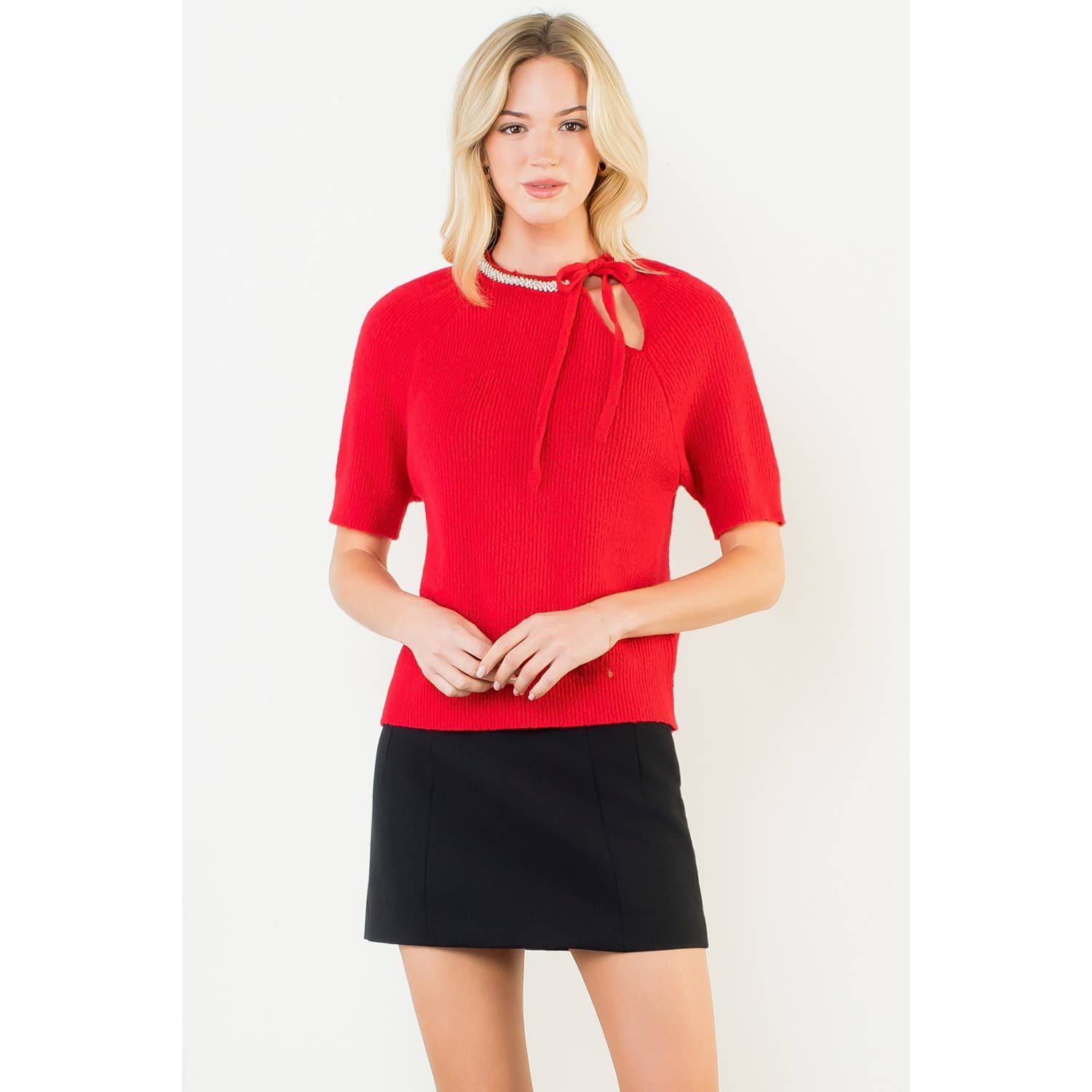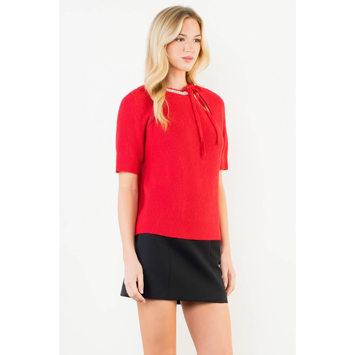 Short Sleeve Embellished Detailing Knit Top