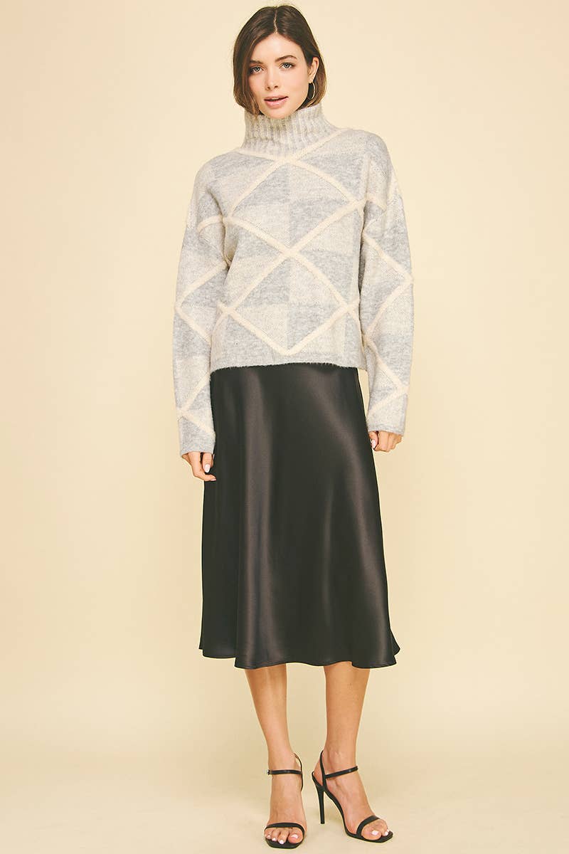 DIAMOND PATTERN TURTLE NECK SWEATER - 6354WS